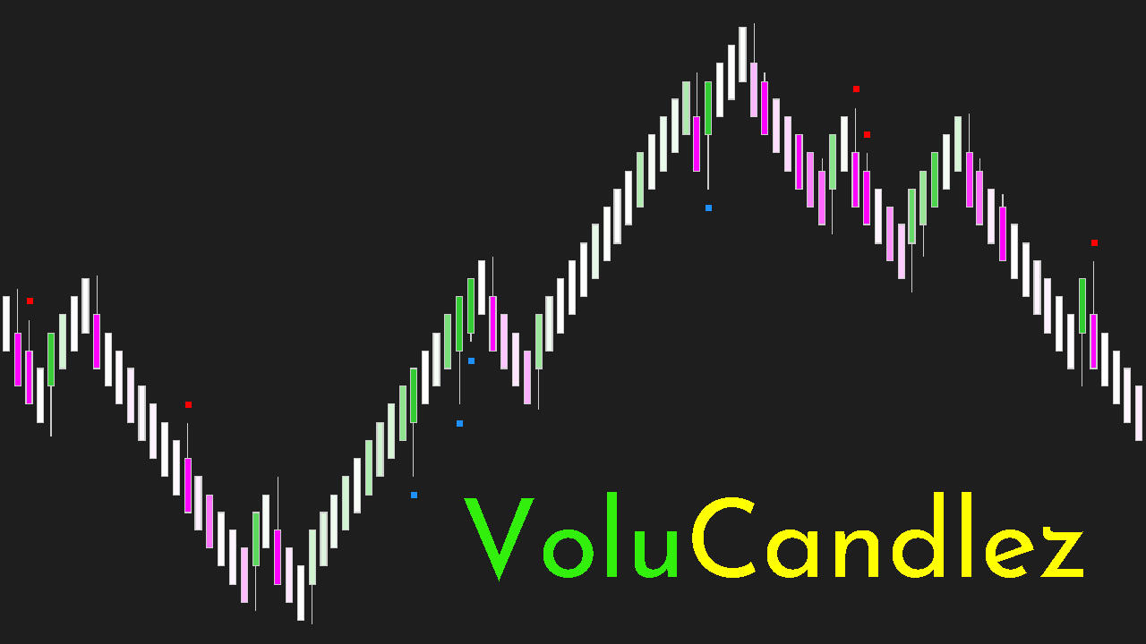 VoluCandlez integrates volume directly into candle colors, allowing you to see participation without leaving price action. Candle color intensity reflects volume relative to its own average – high-volume bullish candles appear deeper blue, while high-volume bearish candles appear deeper red.